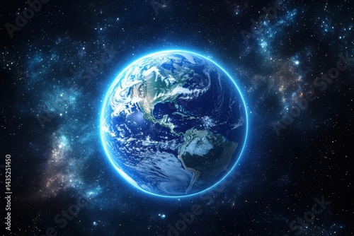 Wall mural : Glowing earth with continents and nebula in deep space shown