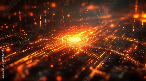 The watermark will not be included on Wall mural.: Glowing energy core in a digital space with flowing data and light trails