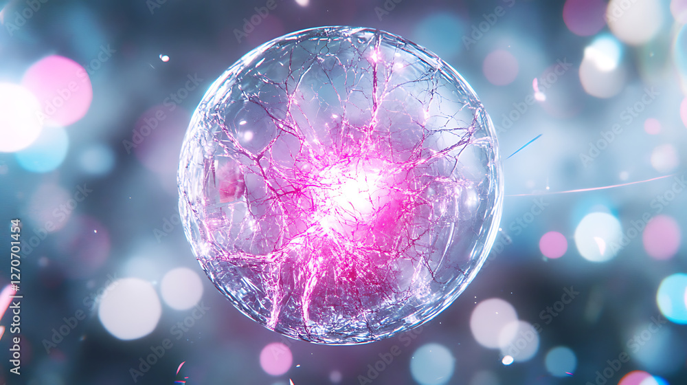 The watermark will not be included on Wall mural.: Glowing energy orb sphere fractal abstract background design visual art concept creation idea