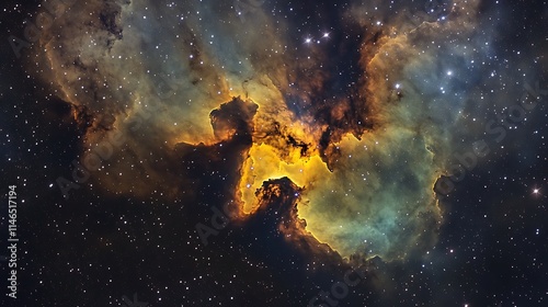 Wall mural glowing ethereal nebula clouds in radiant colors surrounded by star clusters floating in deep space