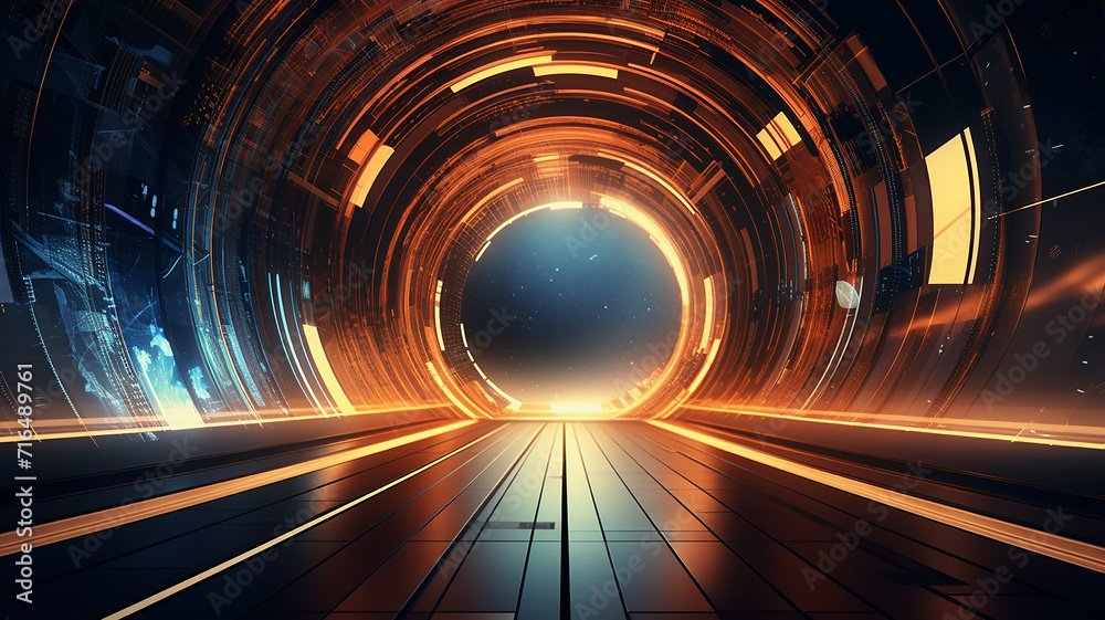 Wall mural glowing futuristic fantasy tunnel abstract background path of the future