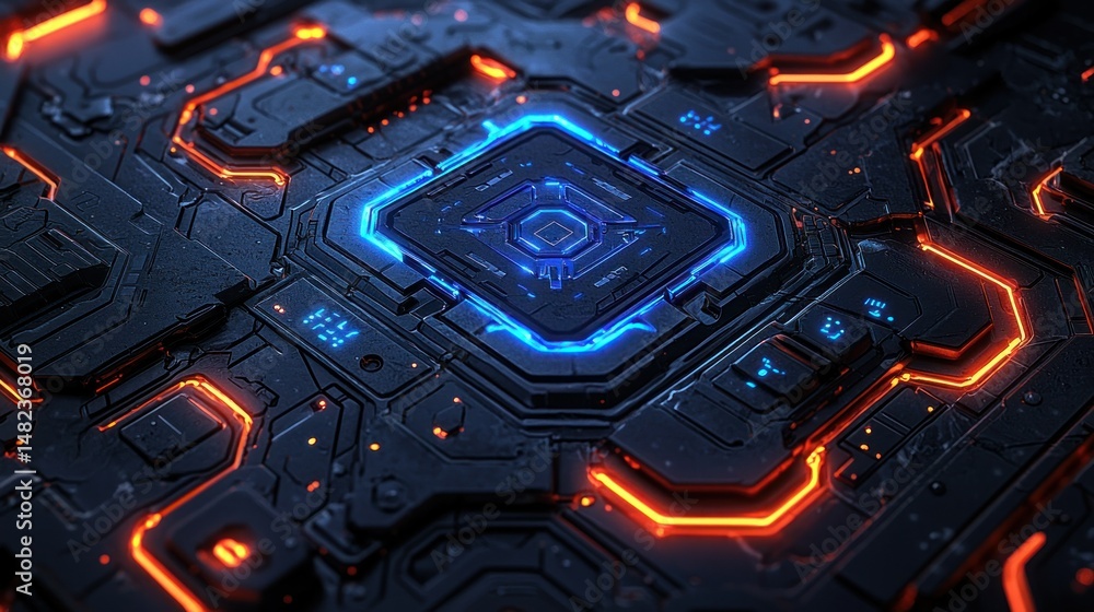 The watermark will not be included on Wall mural.: Glowing geometric patterns on a textured surface