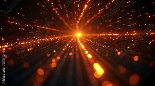 Wall mural glowing gold particles in dark tunnel abstract background, technology and data visual pathway of lig