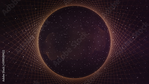 The watermark will not be included on Wall mural.: Glowing gold vortex abstract line art in space - background