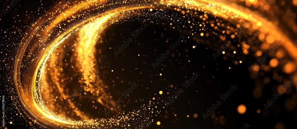 Wall mural glowing golden particles swirling in a black hole vortex with deep space backdrop and empty space fo - Wall murals Wall mural glowing golden particles swirling in a black hole vortex with deep space backdrop and empty space fo - Wall murals