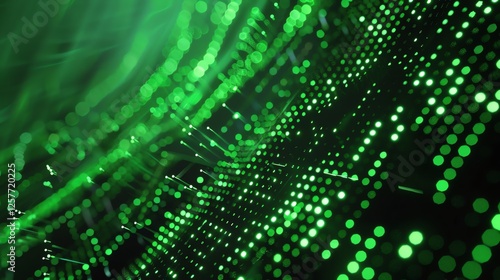 The watermark will not be included on Wall mural.: Glowing green dots and lines of light form an abstract futuristic background -