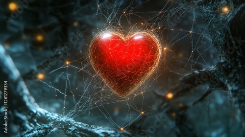 The watermark will not be included on Wall mural.: Glowing heart shape surrounded by digital network connection