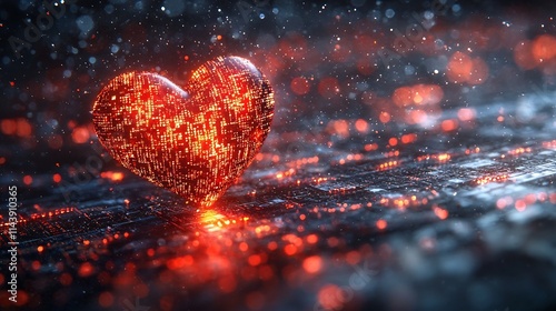 Wall mural : Glowing heart with binary code weaving symbolizing technology and emotion connection