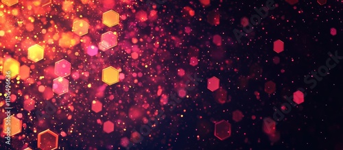 Glowing hexagon abstract digital landscape with vibrant colors on dark background perfect for creatiWall mural