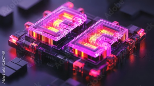 Wall mural glowing hologram representation of blockchain technology elements - Wall murals Wall mural glowing hologram representation of blockchain technology elements - Wall murals