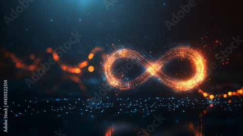 The watermark will not be included on Wall mural.: Glowing infinity symbol formed by particles on dark background -