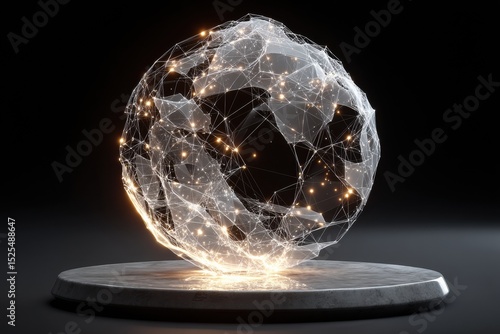 The watermark will not be included on Wall mural.: Glowing interconnected network sphere on a dark background representing connectivity
