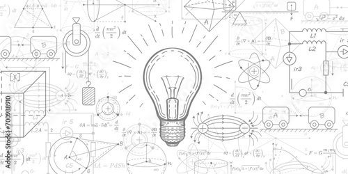 Wall mural glowing light bulb concept. school background in physics and mathematics . formulas and drawings.vec - Wall murals Wall mural glowing light bulb concept. school background in physics and mathematics . formulas and drawings.vec - Wall murals