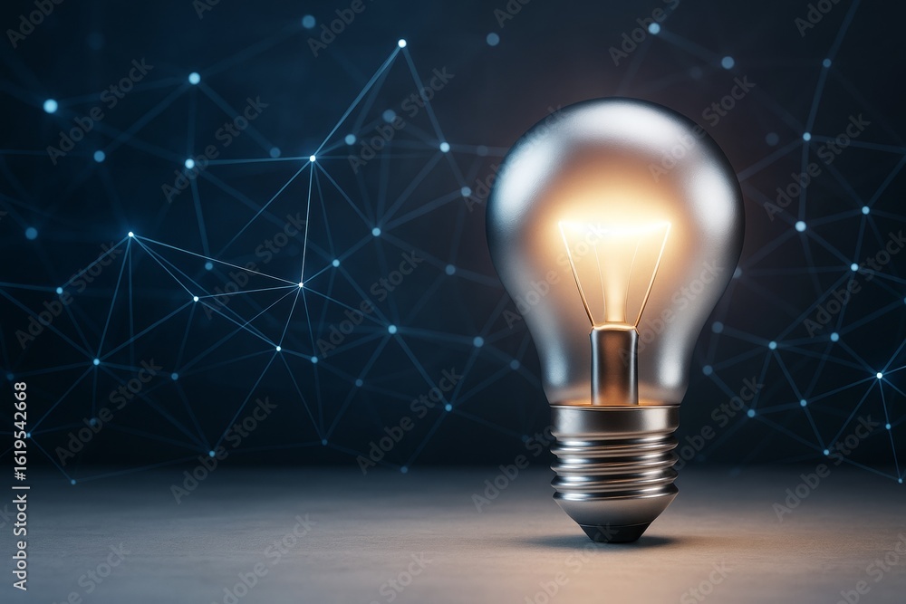 Wall mural glowing light bulb symbolizing innovation and ideas on futuristic abstract tech background with conn - Wall murals Wall mural glowing light bulb symbolizing innovation and ideas on futuristic abstract tech background with conn - Wall murals