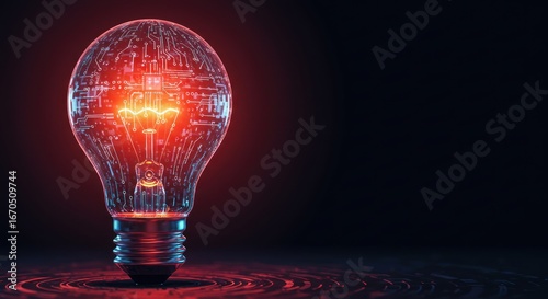 Wall mural glowing lightbulb with circuit board design on dark background representing innovation. - Wall murals Wall mural glowing lightbulb with circuit board design on dark background representing innovation. - Wall murals