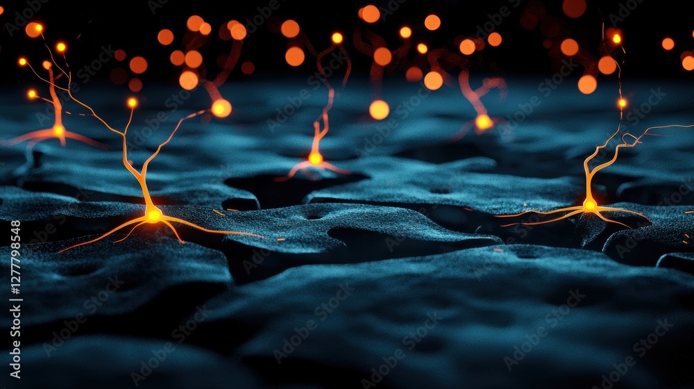 Wall mural glowing lines and pulses traveling through a network of neurons, illustrating the flow of informatio - Wall murals Wall mural glowing lines and pulses traveling through a network of neurons, illustrating the flow of informatio - Wall murals