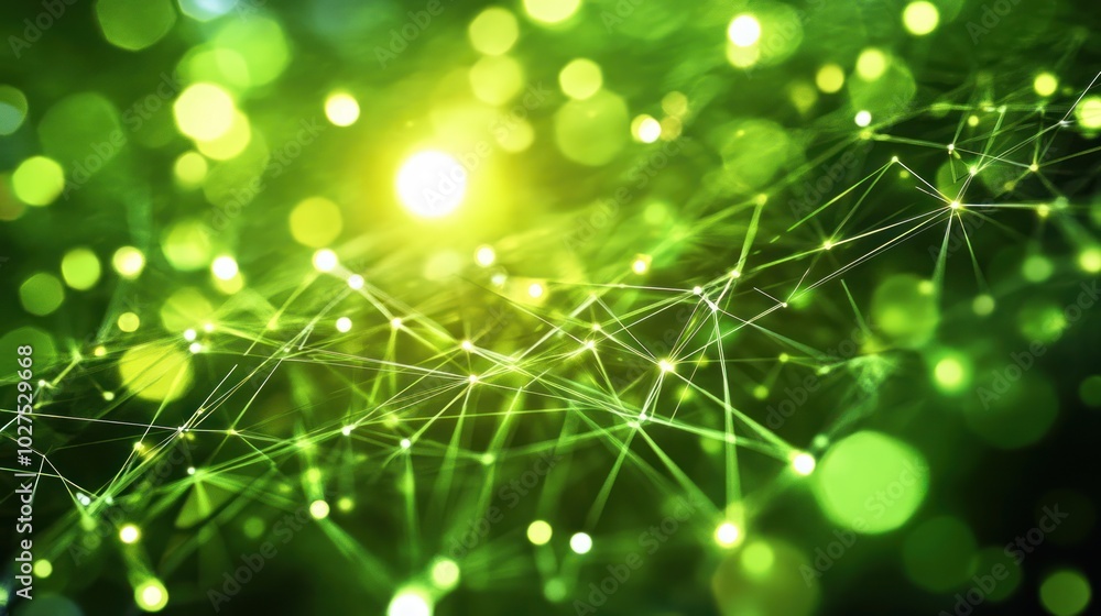 Wall mural glowing lines in green technology data systems, depicting a network of glowing lines connected to re - Wall murals Wall mural glowing lines in green technology data systems, depicting a network of glowing lines connected to re - Wall murals