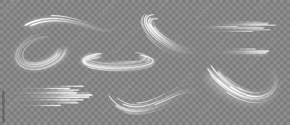 Wall mural glowing lines. speed effect curved and straight lines and tornado wind swirl, white light trails. ab