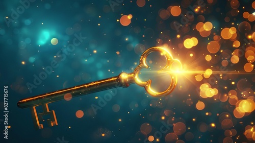 Wall mural : Glowing magical key unlocking illuminated gateway to future dreams and opportunities concept