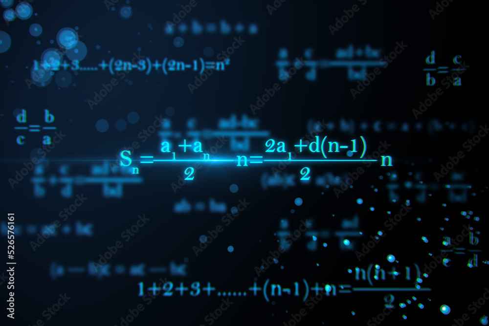 Wall mural glowing mathematical formulas on blue background. education, knowledge and statistics concept. 3d re - Wall murals Wall mural glowing mathematical formulas on blue background. education, knowledge and statistics concept. 3d re - Wall murals