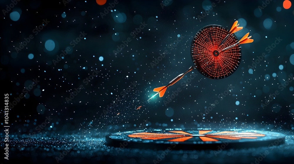 Wall mural glowing mesh darts captured mid flight as they soar toward a luminous digital dartboard in a dynamic - Wall murals Wall mural glowing mesh darts captured mid flight as they soar toward a luminous digital dartboard in a dynamic - Wall murals