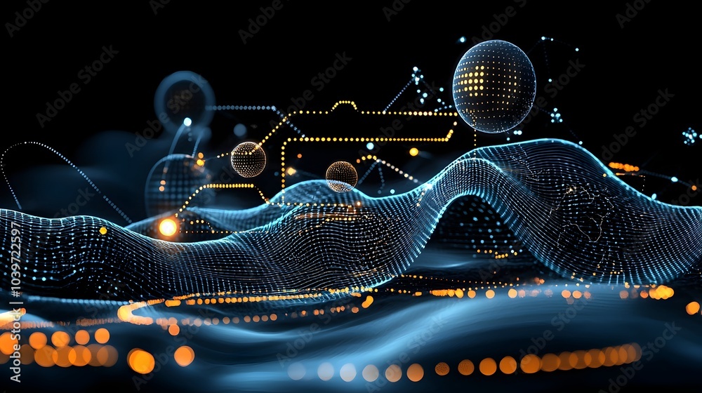 Wall mural glowing mesh line abstract swirls and waves for smooth futuristic background resources dynamic elega - Wall murals Wall mural glowing mesh line abstract swirls and waves for smooth futuristic background resources dynamic elega - Wall murals