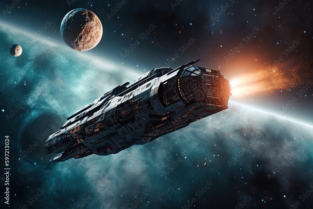 Wall mural : Glowing nebula with swirls of colors and stars in the distant background, created with generative ai