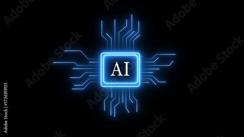 Wall mural glowing neon ai circuit board background. computer motherboard with a chip, processor with artificia - Wall murals Wall mural glowing neon ai circuit board background. computer motherboard with a chip, processor with artificia - Wall murals