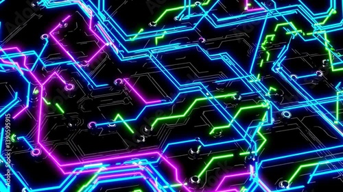 Wall mural glowing neon circuitry creates a complex and futuristic technological network, symbolizing advanced