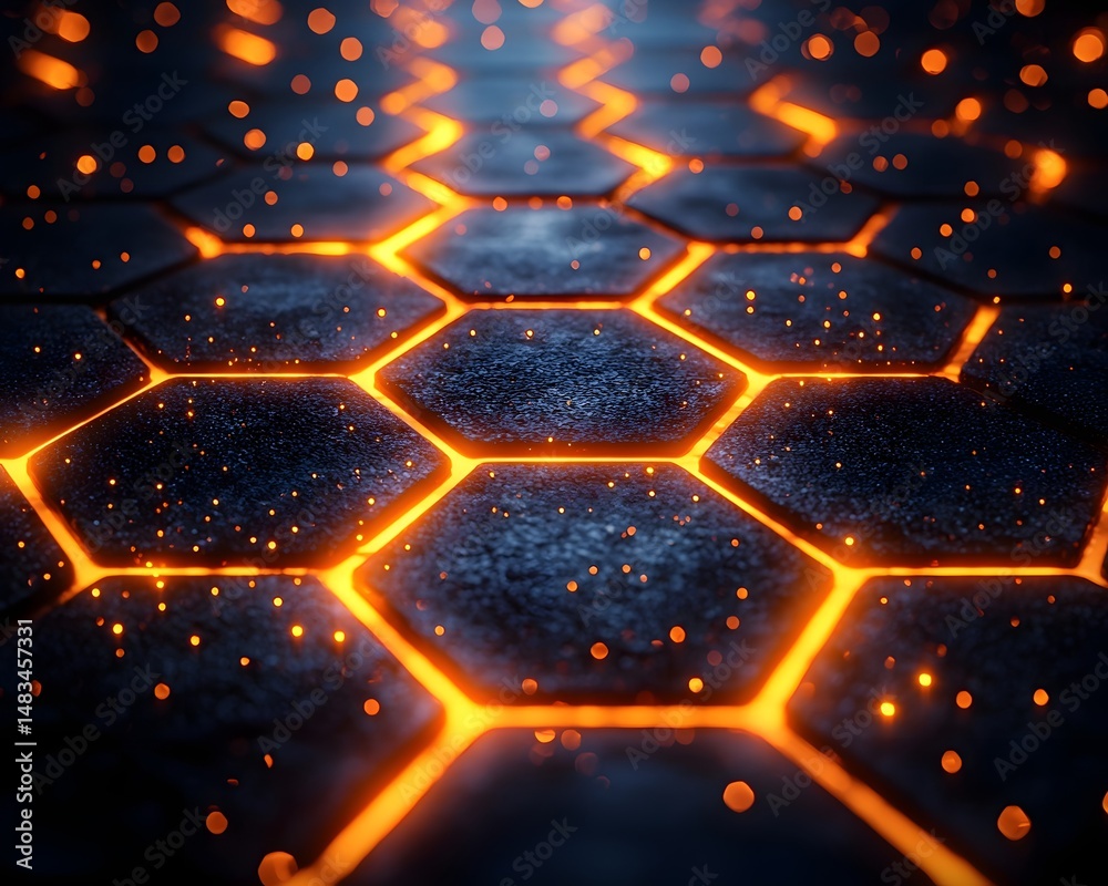 The watermark will not be included on Wall mural.: Glowing neon hexagon pattern on a dark background
