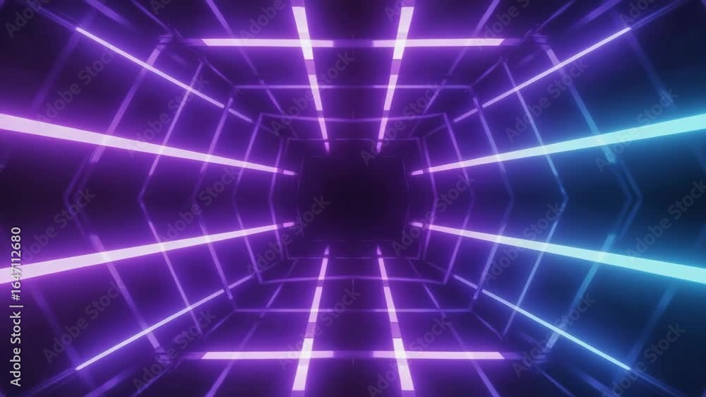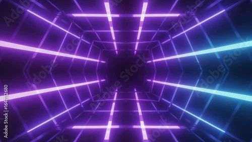 The watermark will not be included on Wall mural.: Glowing neon lights are forming a futuristic tunnel with a hexagonal structure, creating a mesmerizi
