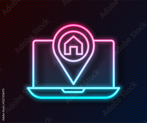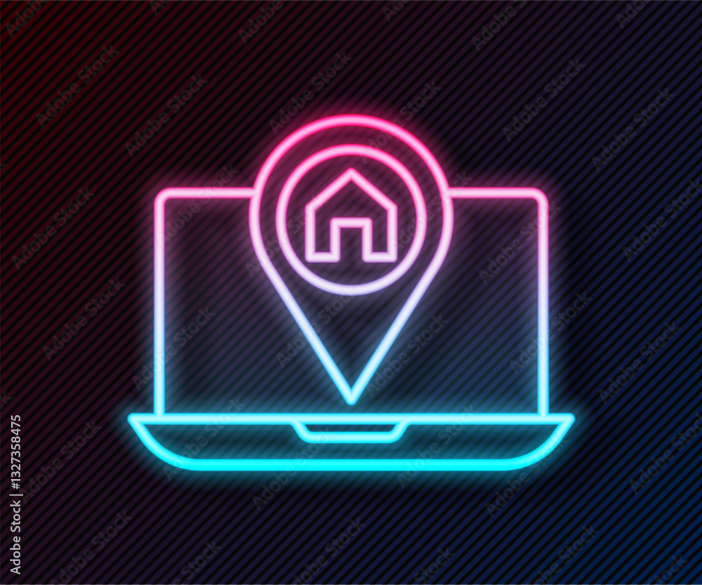 Wall mural : Glowing neon line infographic of city map navigation icon isolated on black background - laptop app i