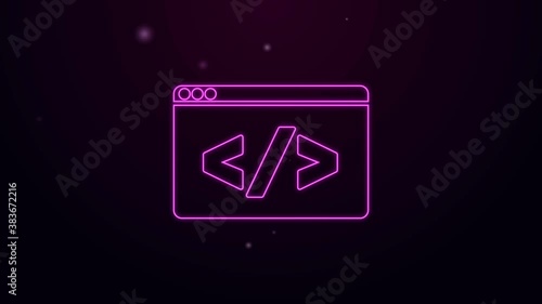 Wall mural : Glowing neon line web design and front end development icon isolated on black background - 4k video m