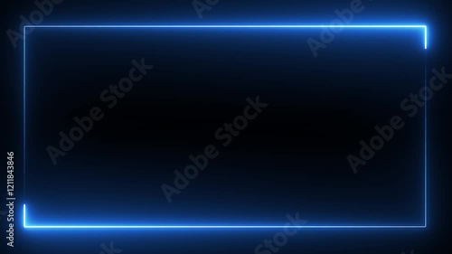 Glowing neon rectangle frame icon animation on black background - rectangle photo frame with neon colWall mural