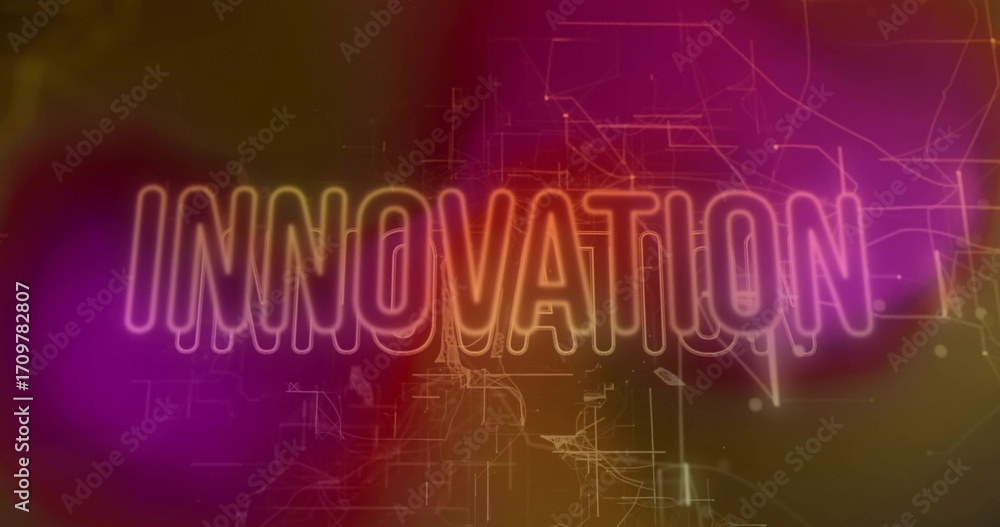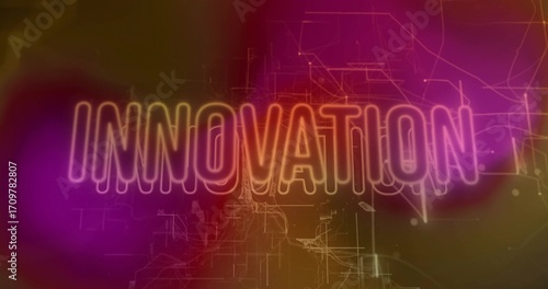 Glowing neon-style text innovation shining in abstract digital environment, with circuit patternsWall mural