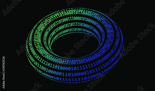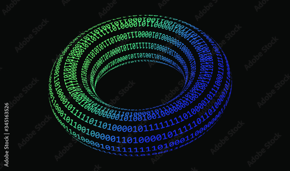 The watermark will not be included on Wall mural.: Glowing neon torus made of binary digits, zeros and ones - metaphor of complexity and connectionism,