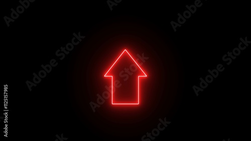 Wall mural Glowing neon up direction arrow icon illumination. Neon upload arrow icon on black background. up arrow direction icon illumination.