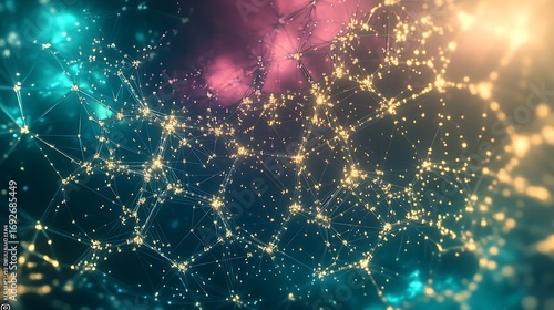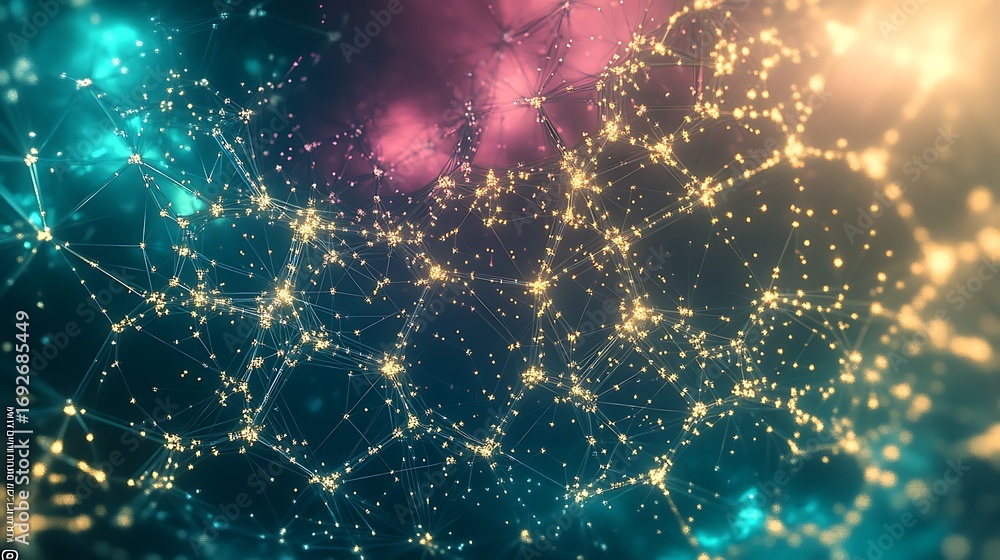 Wall mural glowing network of interconnected dots against a colorful backdrop