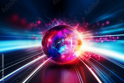 Wall mural : Glowing orb emitting vibrant beams and particles, creating a captivating display of energy and motio