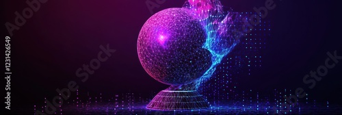 Wall mural glowing orb on a stand with particle effects.