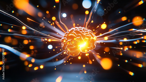 The watermark will not be included on Wall mural.: Glowing orb radiating energy abstract 3d rendering of a futuristic network
