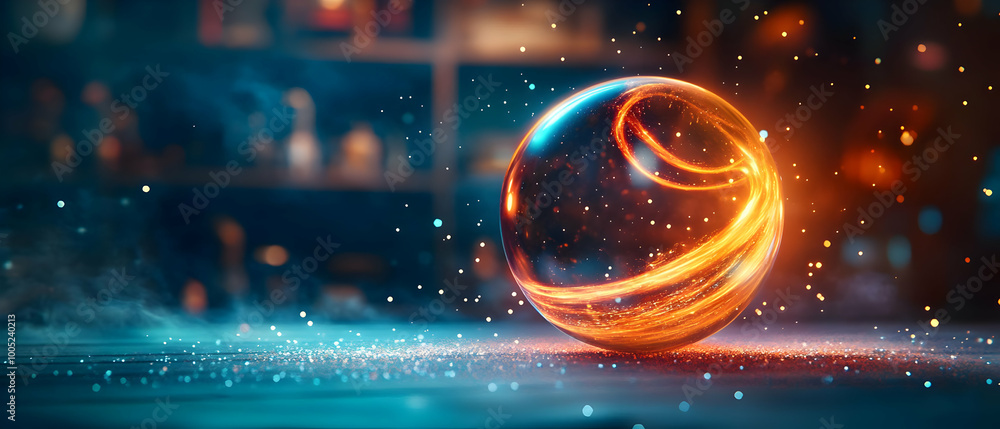 The watermark will not be included on Wall mural.: Glowing orb with vibrant colors and sparkling effects, creating a magical atmosphere -