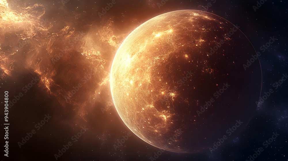 The watermark will not be included on Wall mural.: Glowing planet in space with a nebula in the background -