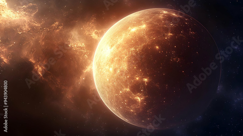 Wall mural glowing planet in space with a nebula in the background. - Wall murals Wall mural glowing planet in space with a nebula in the background. - Wall murals