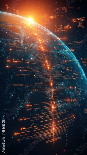 Wall mural glowing planet with digital network overlay - Wall murals Wall mural glowing planet with digital network overlay - Wall murals
