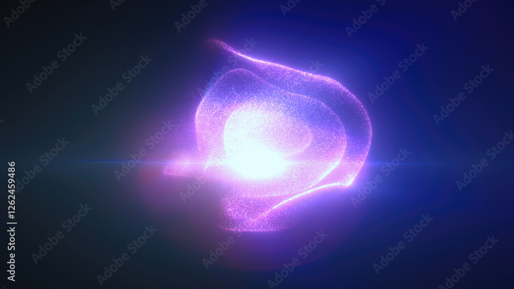 The watermark will not be included on Wall mural.: Glowing purple particles creating a floating sphere shape with intense light at its core, set agains