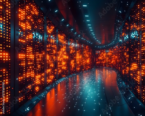 Wall mural glowing quantum computer room with suspended qubit arrays - Wall murals Wall mural glowing quantum computer room with suspended qubit arrays - Wall murals