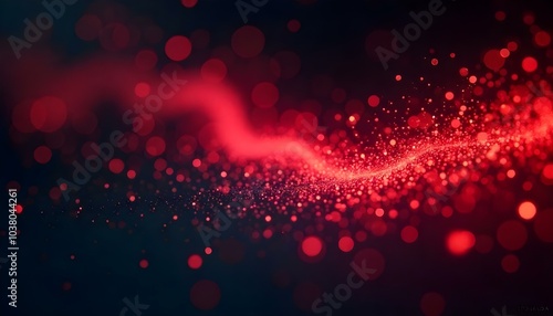 Wall mural : Glowing red abstract waves with sparkling particles on a dark background
