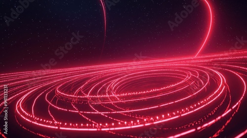 Wall mural glowing red neon planet with rings in dark space generative ai - Wall murals Wall mural glowing red neon planet with rings in dark space generative ai - Wall murals