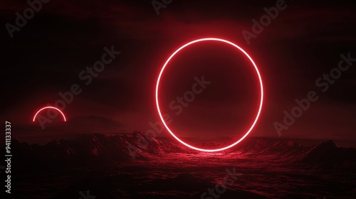 Wall mural glowing red neon planet with rings in dark space generative ai - Wall murals Wall mural glowing red neon planet with rings in dark space generative ai - Wall murals